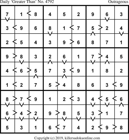 Weekly “Greater Than” Sudoku for week starting 5/27/2019