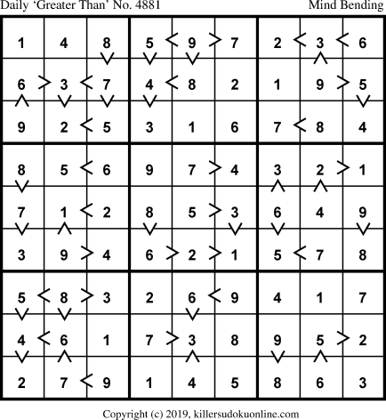 Weekly “Greater Than” Sudoku for week starting 8/19/2019