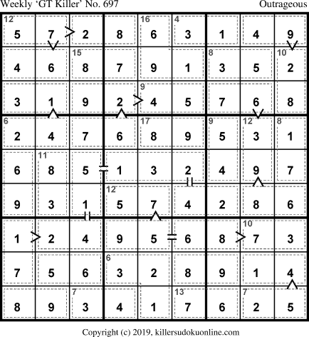 Weekly “Greater Than” Killer sudoku for week starting 8/19/2019