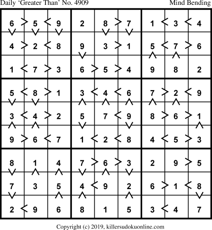 Weekly “Greater Than” Killer sudoku for week starting 9/16/2019