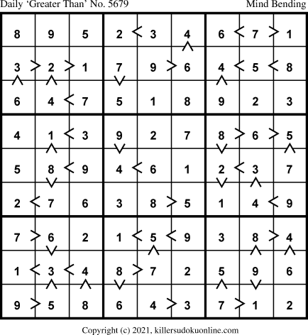 Weekly “Greater Than” Sudoku for week starting 10/25/2021