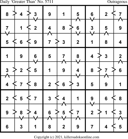 Weekly “Greater Than” Killer sudoku for week starting 11/29/2021
