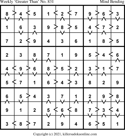 Weekly “Greater Than” Sudoku for week starting 12/20/2021