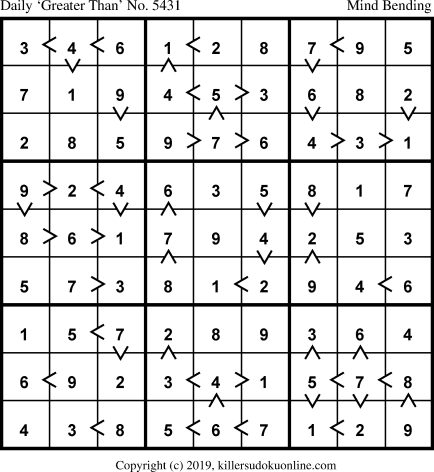 Weekly “Greater Than” Sudoku for week starting 2/22/2021