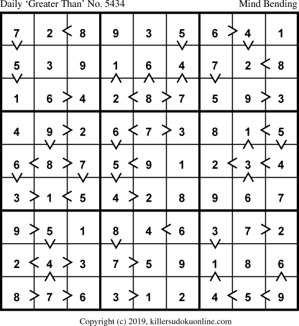 Weekly “Greater Than” Sudoku for week starting 2/22/2021