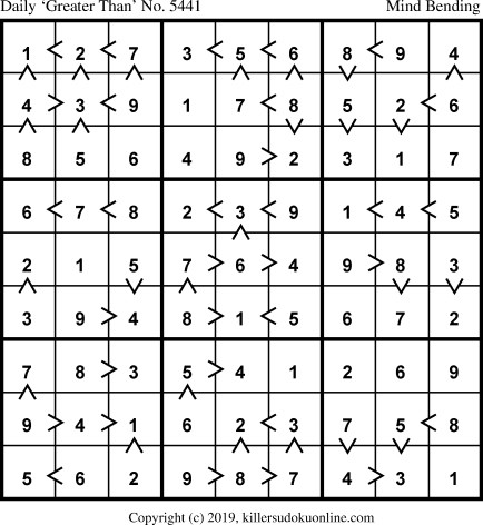 Weekly “Greater Than” Sudoku for week starting 3/1/2021