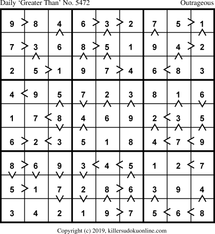 Weekly “Greater Than” Killer sudoku for week starting 4/5/2021