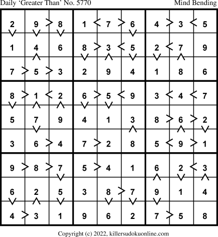 Weekly “Greater Than” Sudoku for week starting 1/24/2022
