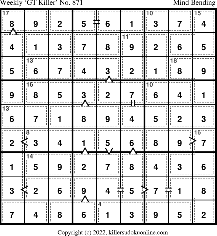 Weekly “Greater Than” Killer sudoku for week starting 12/19/2022