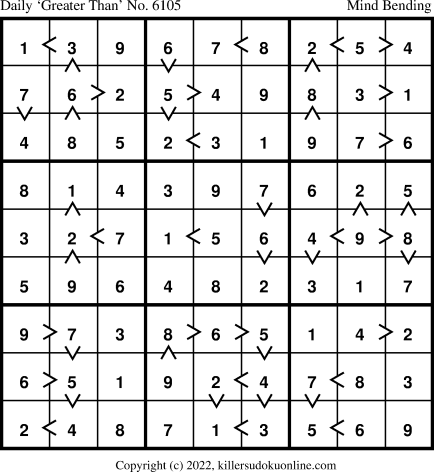 Weekly “Greater Than” Sudoku for week starting 12/26/2022
