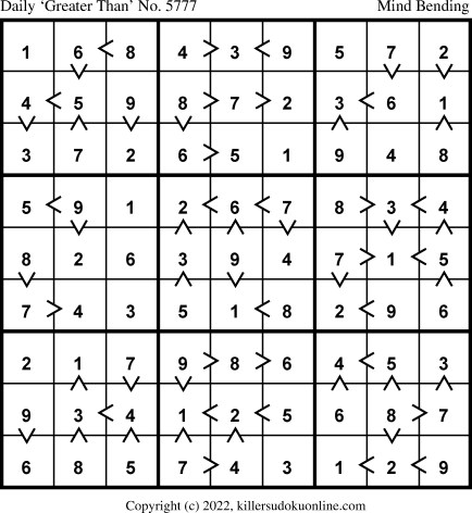 Weekly “Greater Than” Sudoku for week starting 1/31/2022