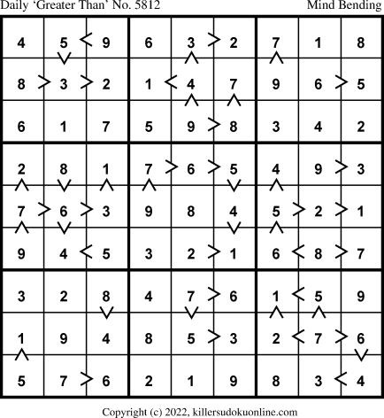 Weekly “Greater Than” Sudoku for week starting 3/7/2022