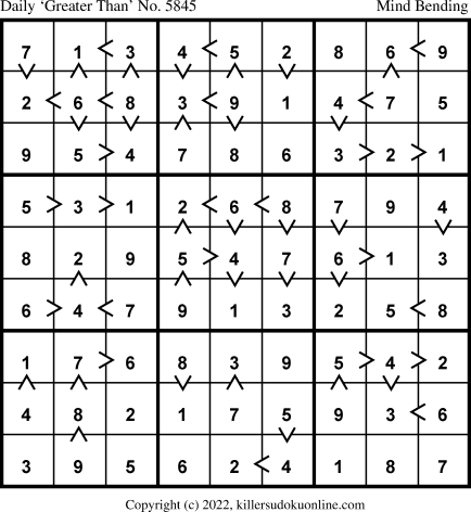 Weekly “Greater Than” Sudoku for week starting 4/11/2022