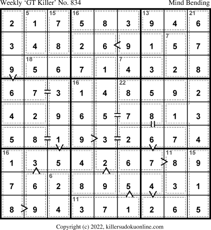 Weekly “Greater Than” Killer sudoku for week starting 4/4/2022