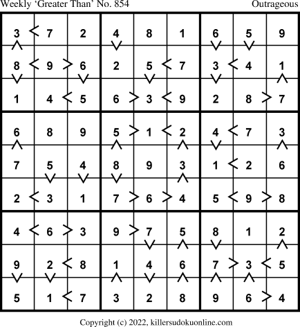 Weekly “Greater Than” Sudoku for week starting 4/4/2022