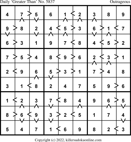 Weekly “Greater Than” Sudoku for week starting 4/4/2022