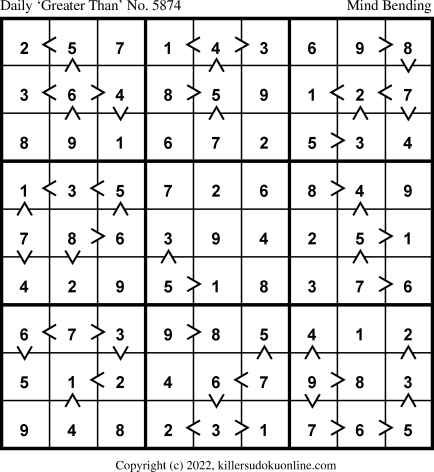 Weekly “Greater Than” Sudoku for week starting 5/9/2022