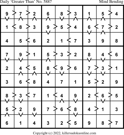 Weekly “Greater Than” Sudoku for week starting 5/23/2022