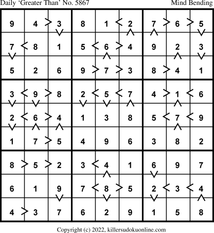 Weekly “Greater Than” Sudoku for week starting 5/2/2022