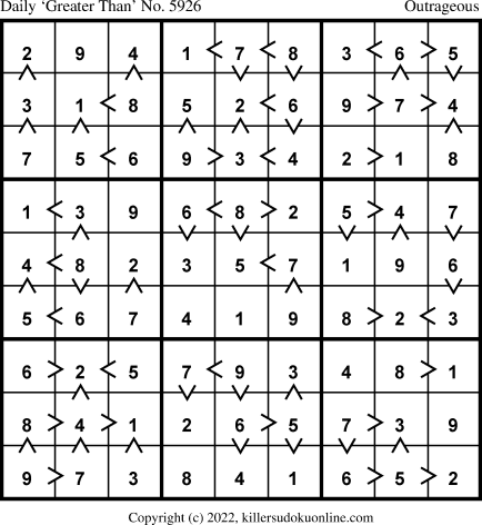 Daily “Greater Than” Sudoku for 7/5/2022