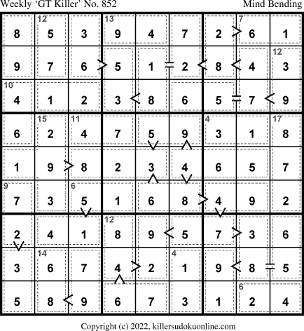 Weekly “Greater Than” Killer sudoku for week starting 8/8/2022