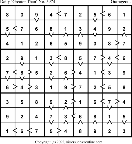 Daily “Greater Than” Sudoku for 8/22/2022