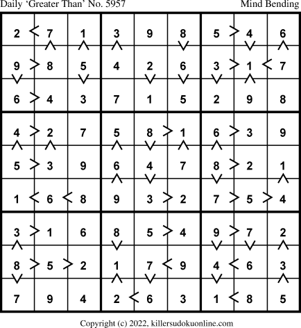 Weekly “Greater Than” Sudoku for week starting 8/1/2022