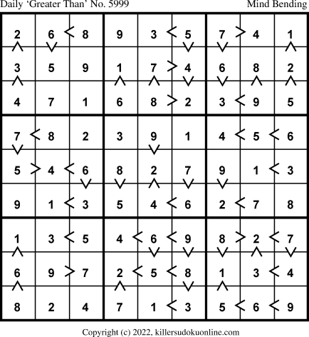 Weekly “Greater Than” Sudoku for week starting 9/12/2022