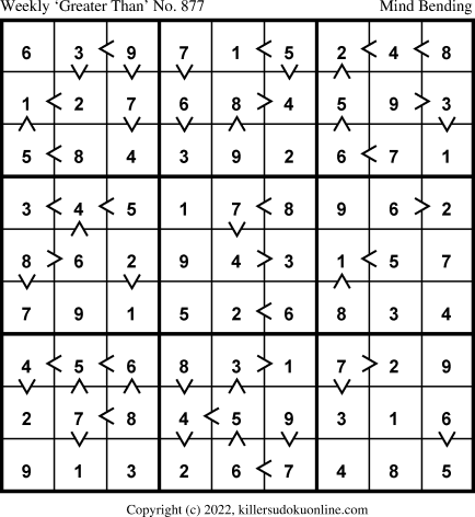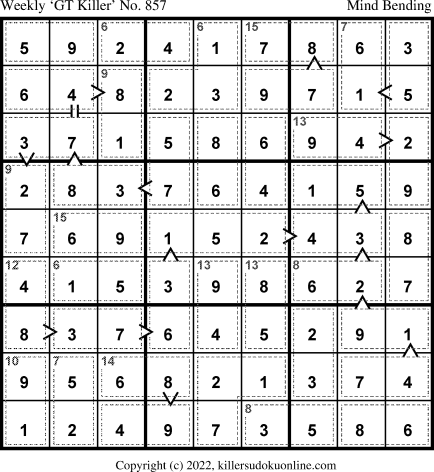 Weekly “Greater Than” Killer sudoku for week starting 9/12/2022