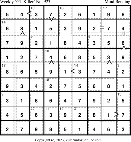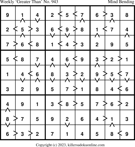 Weekly “Greater Than” Killer sudoku for week starting 12/18/2023
