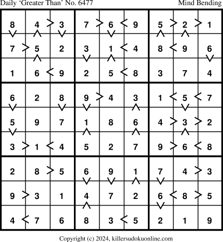 Weekly “Greater Than” Sudoku for week starting 1/1/2024