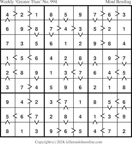 Weekly “Greater Than” Sudoku for week starting 12/9/2024