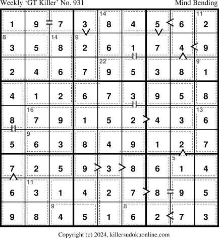 Weekly “Greater Than” Killer sudoku for week starting 2/12/2024