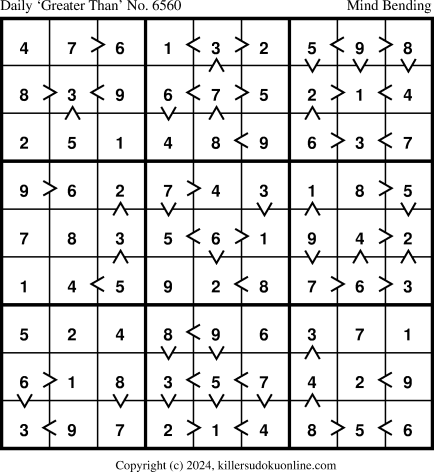 Weekly “Greater Than” Killer sudoku for week starting 3/25/2024