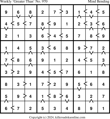 Weekly “Greater Than” Sudoku for week starting 6/24/2024