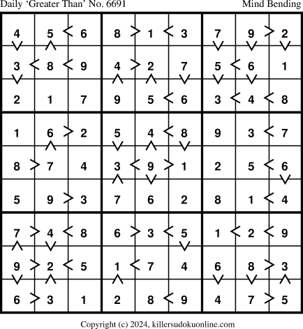 Weekly “Greater Than” Sudoku for week starting 8/5/2024