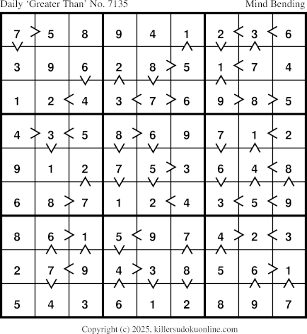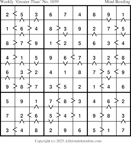 Weekly “Greater Than” Killer sudoku for week starting 10/20/2025