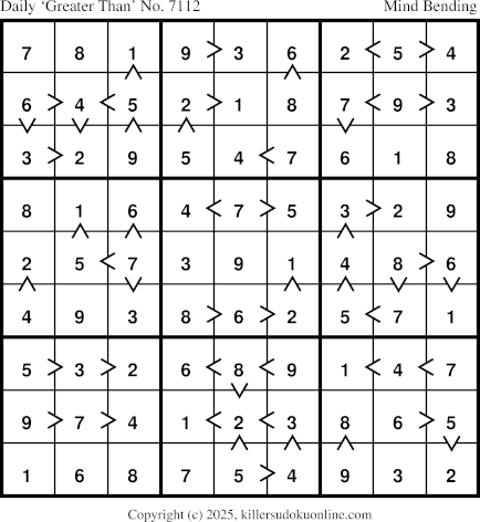 Weekly “Greater Than” Killer sudoku for week starting 9/29/2025