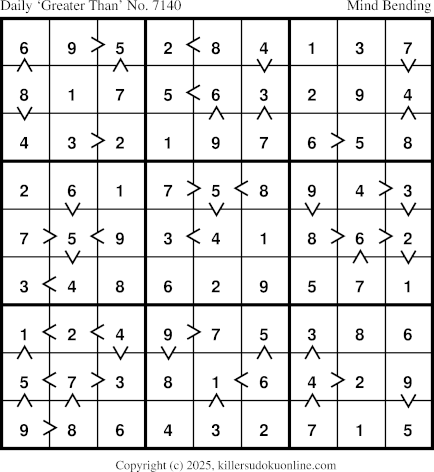 Weekly “Greater Than” Killer sudoku for week starting 10/27/2025