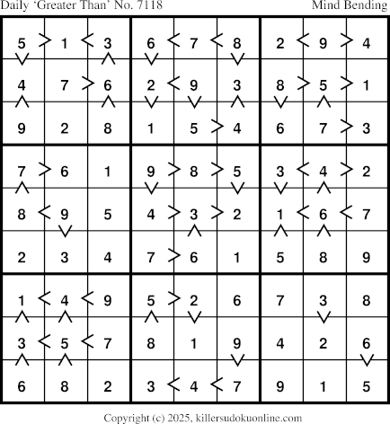 Weekly “Greater Than” Sudoku for week starting 10/6/2025
