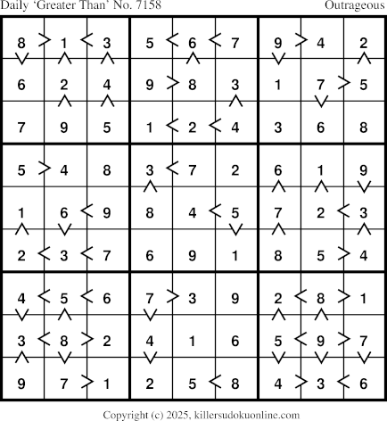 Weekly “Greater Than” Killer sudoku for week starting 11/17/2025