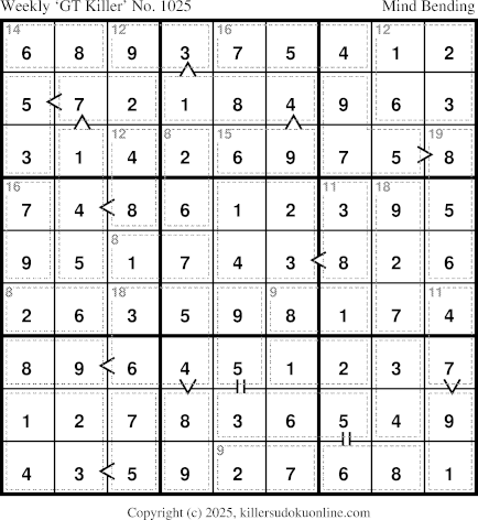 - Weekly “Greater Than” Killer sudoku