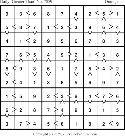 Weekly “Greater Than” Killer sudoku for week starting 8/11/2025