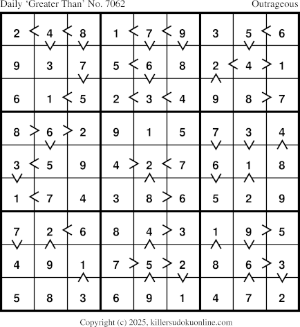Weekly “Greater Than” Killer sudoku for week starting 8/11/2025