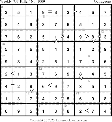 Weekly “Greater Than” Killer sudoku for week starting 8/11/2025