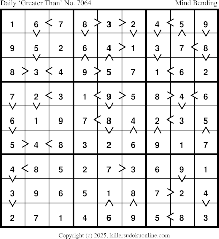 Weekly “Greater Than” Killer sudoku for week starting 8/11/2025
