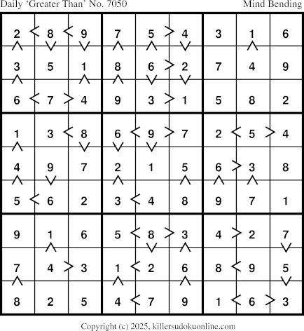 Weekly “Greater Than” Killer sudoku for week starting 7/28/2025
