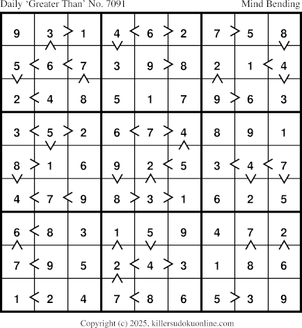 Weekly “Greater Than” Sudoku for week starting 9/8/2025