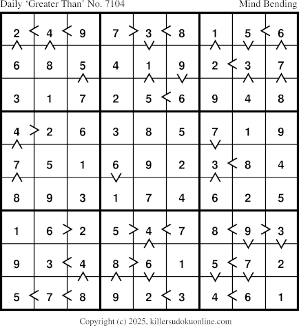 Weekly “Greater Than” Killer sudoku for week starting 9/22/2025
