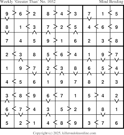 Weekly “Greater Than” Killer sudoku for week starting 9/1/2025